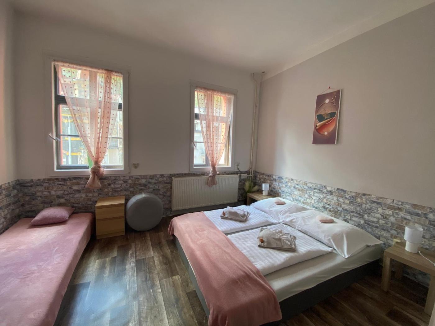 Two-Bedroom Suite. The suite features 2 bedrooms and 1 bathroom with a shower and free toiletries. The suite offers a flat-screen TV with streaming services, a tea and coffee maker, a wardrobe, heating as well as city views. The unit offers 6 beds. ;