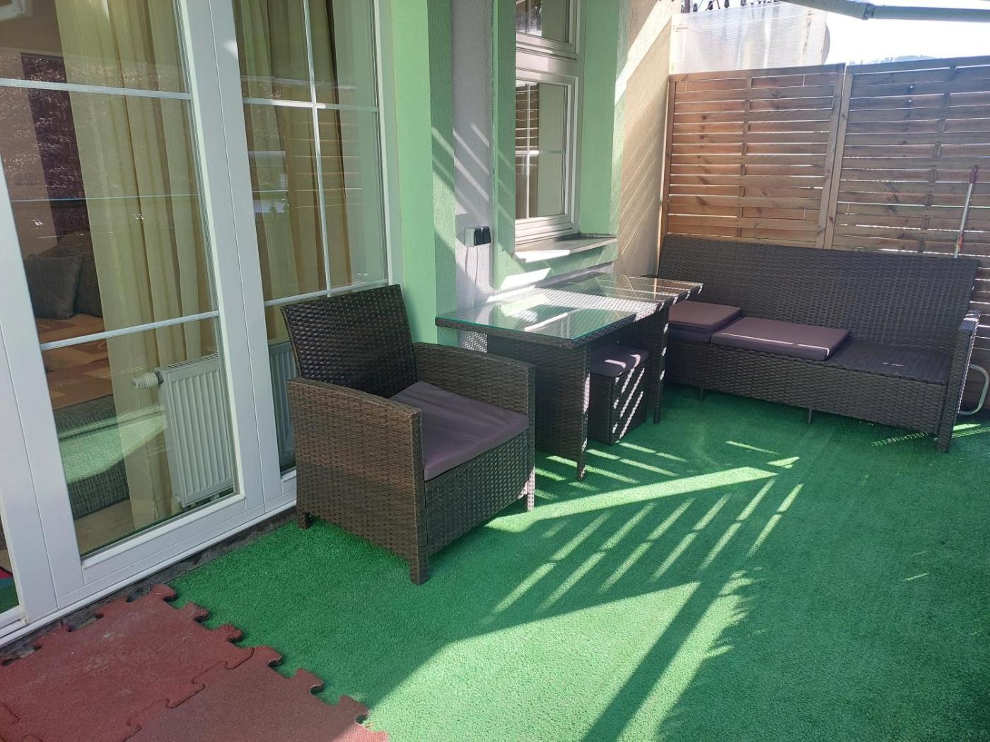 One-Bedroom Apartment with Terrace. - 2 bedrooms - living room with fully equipped kitchen - bathroom with washing machine and washbasin - separate toilet - 2 balconies offering views over the city and of the forest Bed linen and towels are provided free of charge. The apartment features one bedroom, a living room with a fully equipped kitchen, and two bathrooms, including a washing machine. Guests can enjoy a spacious terrace with a pleasant forest view. Bed linen and towels are provided free of charge for the comfort of our guests. The maximum occupancy of the apartment is 4 guests (see Hotel Policies). ;