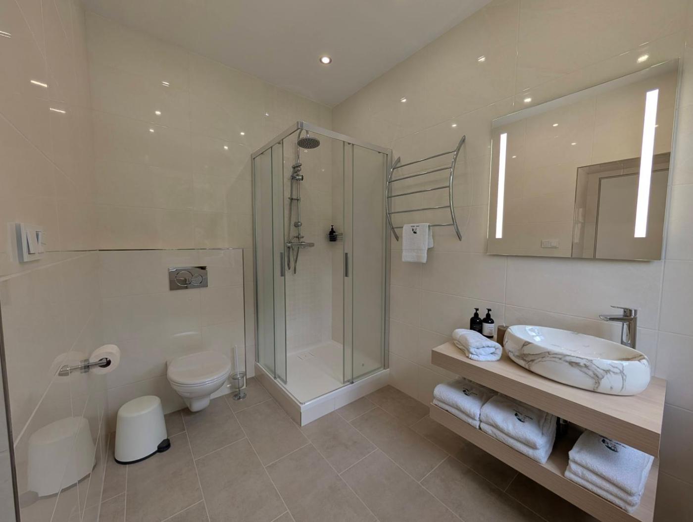One-Bedroom Apartment. Featuring a private entrance, this apartment also is comprised of 1 bedroom, a seating area and 1 bathroom with a shower and a hairdryer. Guests can make meals in the kitchenette that is fitted with a stovetop, a refrigerator, a dishwasher and kitchenware. The apartment offers a washing machine, soundproof walls, a tea and coffee maker, a flat-screen TV with satellite channels, as well as garden views. The unit offers 2 beds. ;