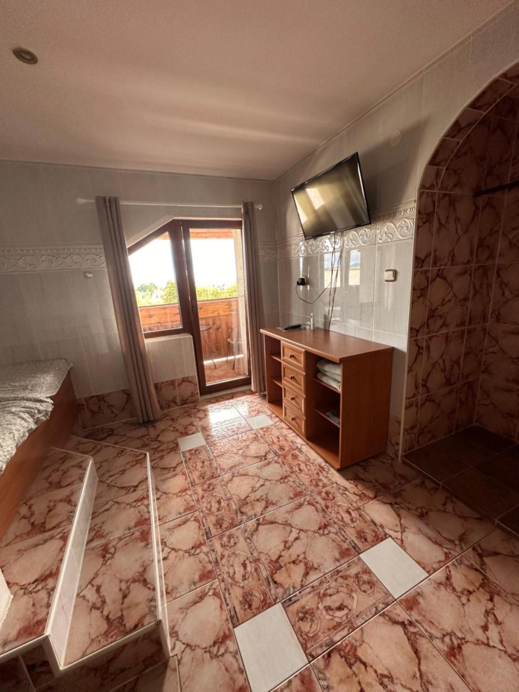 Situated in Most, Penzion pod lesem offers accommodation with seating area. The guest house features city views, a sun terrace, and free WiFi is available.
