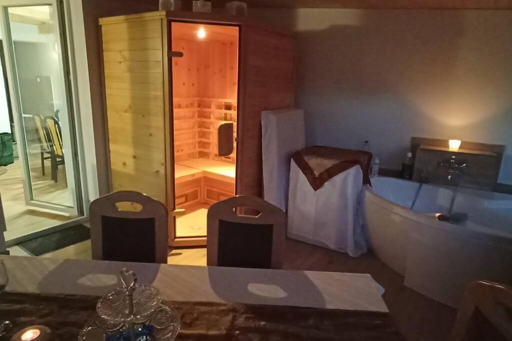 Two-Bedroom House. This holiday home boasts a private pool, sauna and fireplace. Featuring a private entrance, this air-conditioned holiday home consists of 1 living room, 2 separate bedrooms and 1 bathroom with a shower. Guests will find a stovetop, a refrigerator, a dishwasher and kitchenware in the well-equipped kitchen. The holiday home also offers a barbecue. The unit features a washing machine, garden views, a terrace and winechampagne is provided for guests. The unit offers 4 beds.