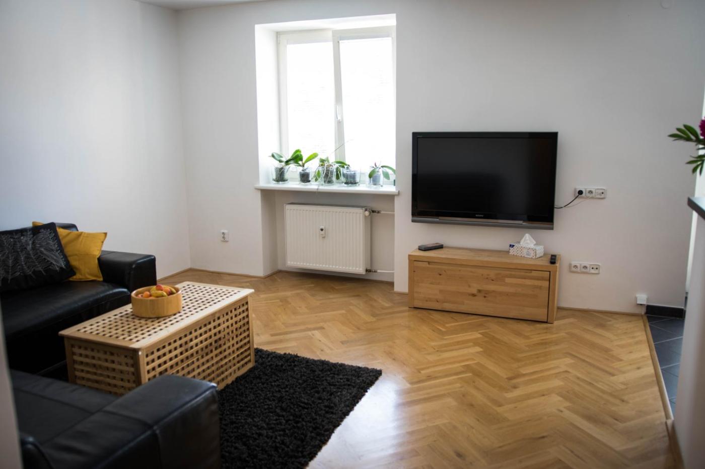 One-Bedroom Apartment. This spacious apartment consists of 1 living room, 1 separate bedroom and 1 bathroom with a bath and free toiletries. The well-equipped kitchen features a stovetop, a refrigerator, a dishwasher and kitchenware. The apartment has parquet floors, a seating area with a flat-screen TV, a washing machine, a tea and coffee maker as well as city views. The unit offers 2 beds.